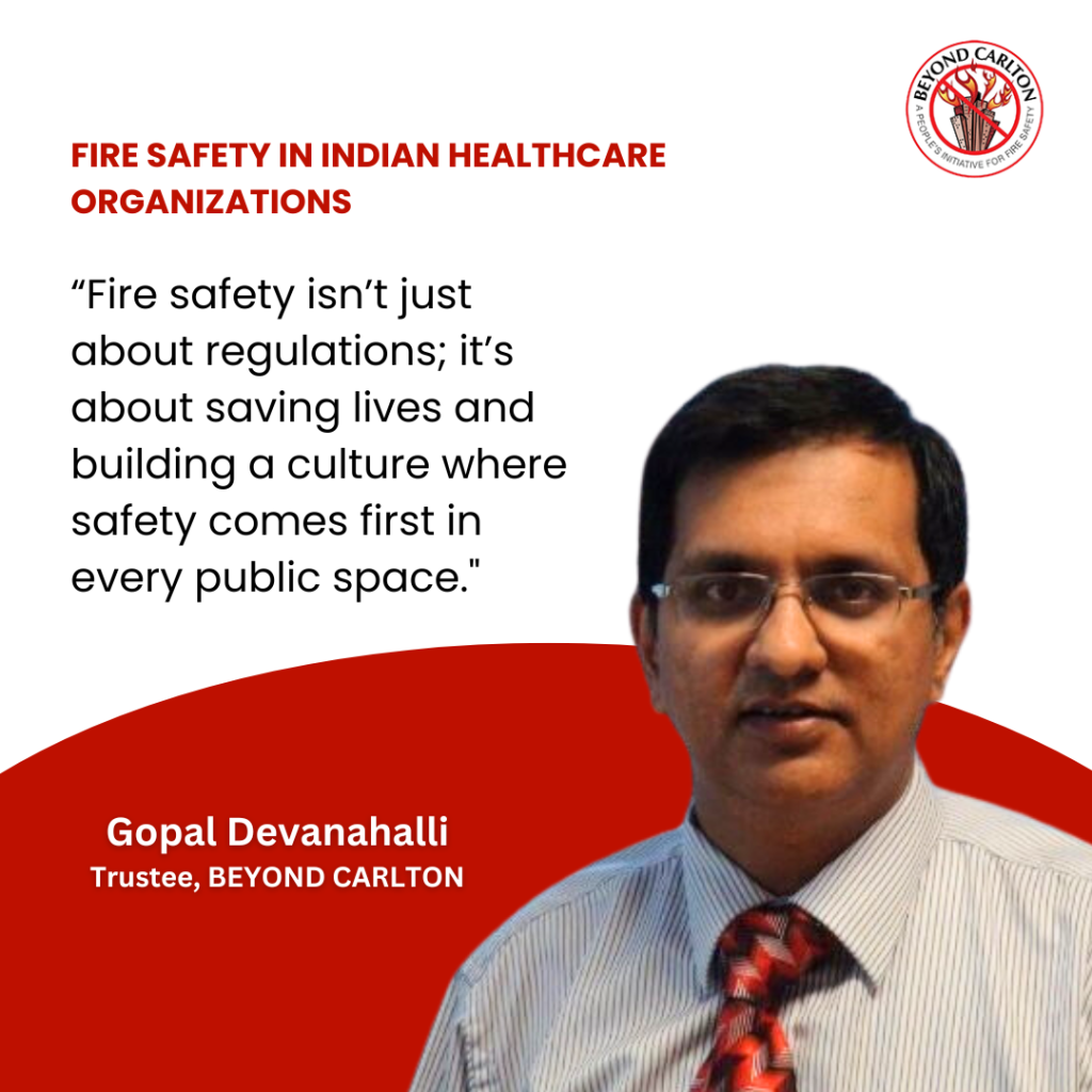 On 22nd January 2025, Beyond Carlton organized a panel discussion on fire safety in Indian healthcare organizations. Moderated by Gopal Devanahalli, Trustee at Beyond Carlton, the discussion brought together a distinguished panel of experts: